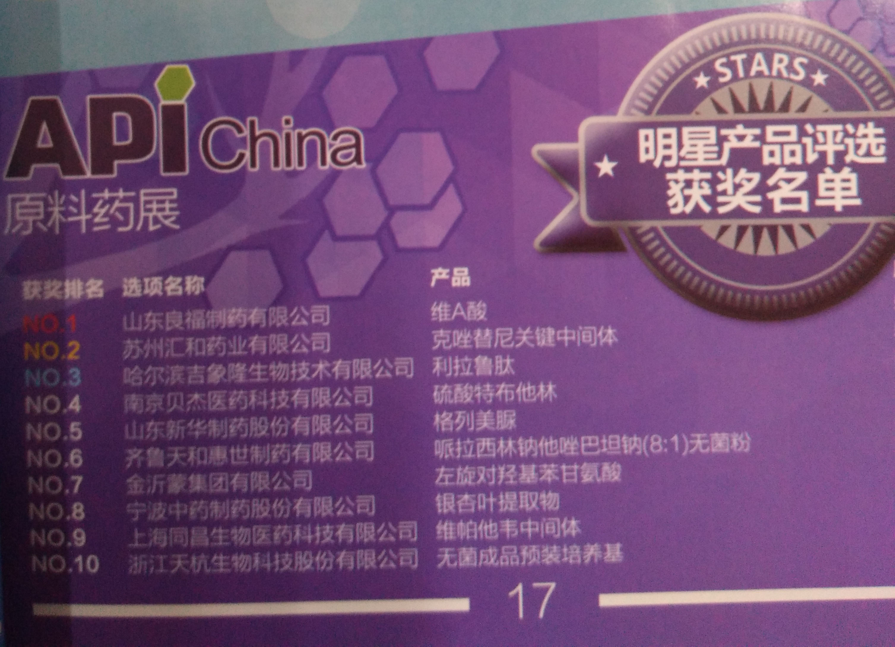 我公司利拉鲁肽原料被评为本次展会明星产品